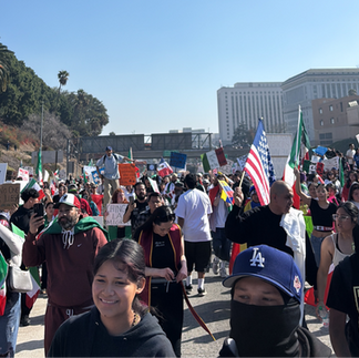 The young woman went alone. The journey required a bus, then an hour-long train ride from what people call the Inland Empire to the City. The City. Then a short walk from Union Station to the oldest street in the City, founded by people who came from the same country her parents had come from, but, when the City was founded, it was still that country, so they, the founders, most of them anyway, had really not come from anywhere but the land they were born in when El Pueblo de Nuestra Señora la Reina de los Ángeles was founded in 1781. The plaza was also the site of raids nearly a century earlier, in 1931, the beginning of the forced expulsion of almost two million people. She had learned that and more in college. She learned that knowledge meant little unless you did something with it. And now she was there, there with others, born here, born there. She had made her sign the night before in her dorm room: “Ningun ser humano es illegal en tierra robada.” The crowd grew larger than the plaza and spread to the street. And then, moving as easily as winter rainwater finding its way back to a dry streambed, they took the freeway. She looked up. The familiar green signs of California freeways: 101 North: Hollywood Freeway. 110 South: San Pedro; 110 North: Pasadena. The sky was cloudless and blue. Palm trees waved. People cheered from the overpasses. Cars and trucks honked. There was singing. There was chanting. The police were somewhere far, far away with their blue and red lights, their sirens and bullhorns. More people than cars. Children too. And flags, so many flags, so many colors. Days earlier, the City had been on fire. People had come together, done what they could in the face of forces stronger than they were. This was a different kind of fire, she felt, a different kind of coming together. Below her, she saw the ribbed concrete, the broken white lane lines. She discovered that while she had started out alone, she no longer was. Neither was she afraid.
