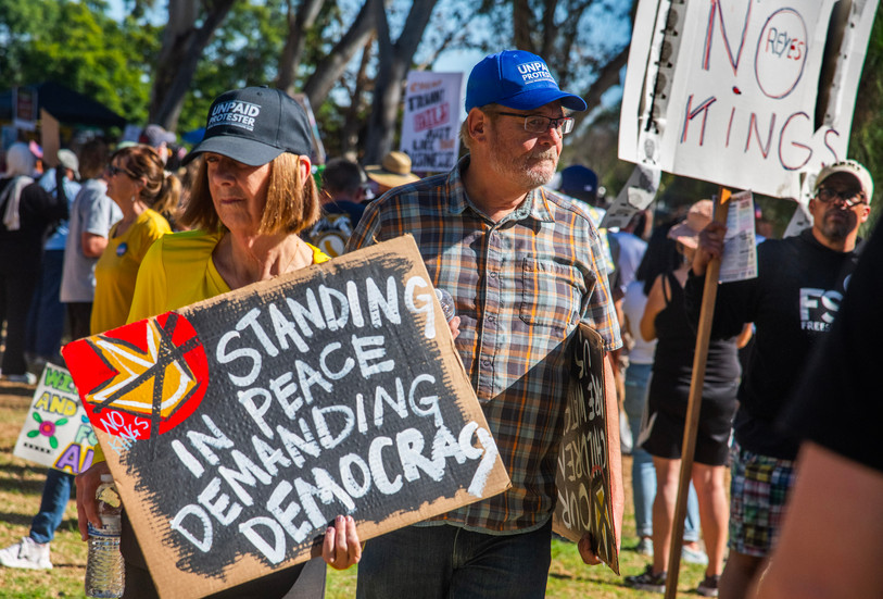 The president and his sycophants have been saying that the people that I agree with are “ANTIFA TERRORISTS.” I don’t see these people as terrorists. They are good Americans who love our country and don’t want it turned into a dictatorship. When I attended the No Kings Day gathering on October 18 at Centennial Park in Santa Ana I didn’t see any terrorists, only a cross section of the kind of Americans with whom I grew up.